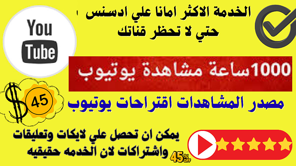 اقدم خدمة مميزة جدا وهي تحقيق شرط 1000 ساعة مشاهدة صالحة تماما لتحقيق الدخل من قناتك مصدرها اقتراحات يوتيوب ستحصل معها علي تفاعل متمثل في لايكات وتعليقات