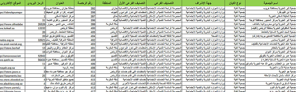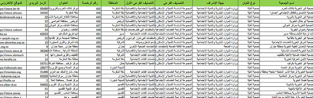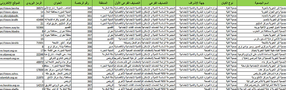 دليل الجمعيات الخيرية السعودية - داتا 7091 جمعية خيرية سعودية