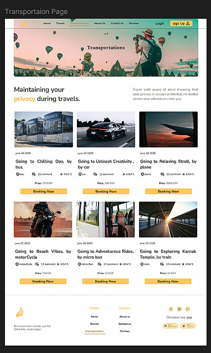 تصميم صفحات رئيسية (Home Page) تعرض أفضل العروض والمقاصد السياحية.