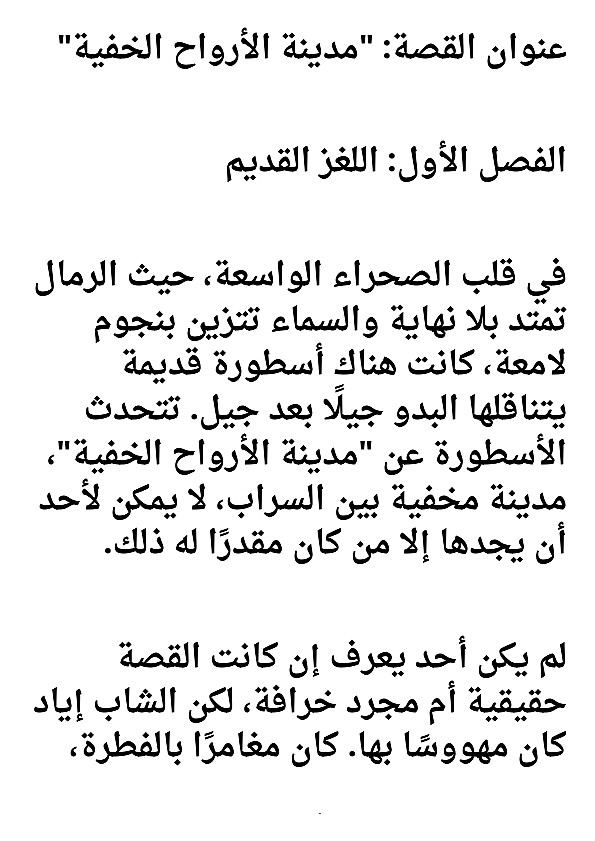 سأكتب لك قصة قصيرة حسب طلبك (رعب، مغامرة، خيال، دراما، رومانسية...) بأسلوب جميل، بدون نسخ، باللغة العربية الفصحى أو العامية حسب رغبتك.