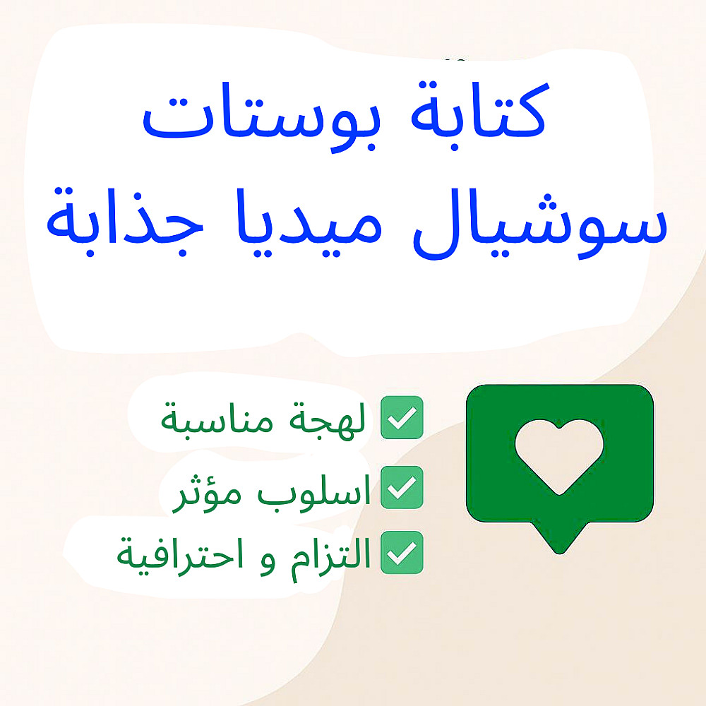 أقدملك خدمة كتابة بوستات سوشيال ميديا باللهجة اللي تناسب جمهورك، سواء بالفصحى أو العامية المصرية، بأسلوب بسيط، سلس، ومناسب للمنصة اللي هتنشر عليها.
