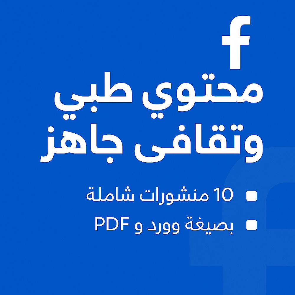 > 🔸 أقدم خدمة كتابة 10 منشورات متنوعة بين طبية وثقافية. 🔸 كل منشور يتراوح بين 40 و60 كلمة. 🔸 العدد الإجمالي للكلمات: ما بين 400 و600 كلمة تقريبًا. 🔸 تسليم الملف بصيغة Word وPDF + تنسيق مرتب من اليمين إلى اليسار. 🔸 محتوى موثوق، سهل الفهم، وجذاب للقارئ. 🔸 مرفق مع المنشورات هاشتاقات مناسبة لكل موضوع.