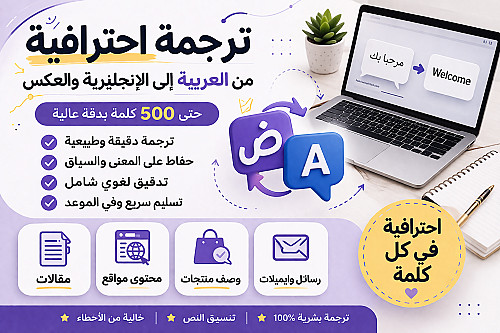 أقدّم خدمة ترجمة دقيقة واحترافية من العربية إلى الإنجليزية ومن الإنجليزية إلى العربية، بأسلوب لغوي سليم يحافظ على المعنى والسياق الثقافي للنص.