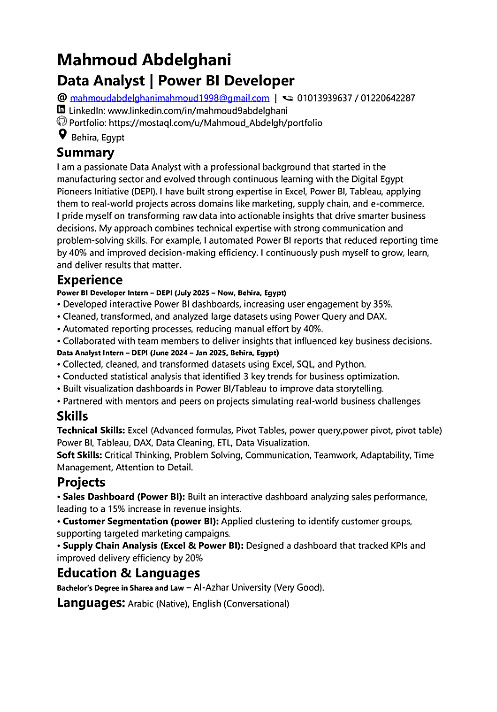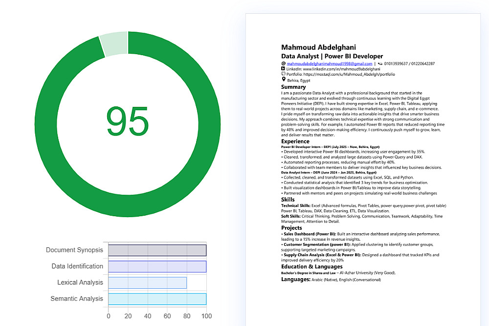 أقوم بإعداد وتصميم CV احترافي متوافق مع أنظمة ATS لضمان تجاوزه أنظمة الفلترة والوصول لمسؤولي التوظيف.