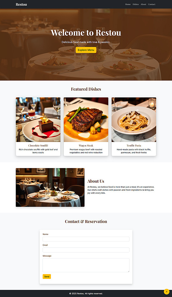 3 أقسام رئيسية (مثلاً: تعريف – خدمات – تواصل).