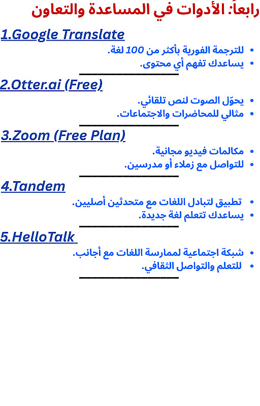 - ملخص سريع + روابط مباشرة للمواقع و التطبيقات التي ذكرت.