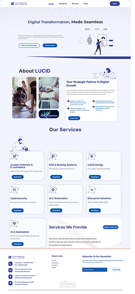 2 صفحه أساسية (من نحن – تواصل معنا) لا تزيد عن 3 سكاشن