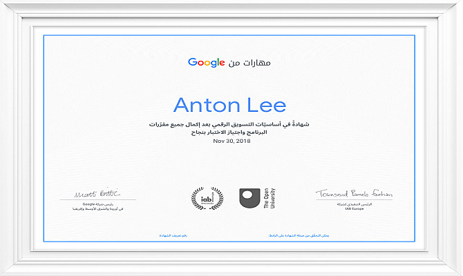 ستحصل علي شهادة جوجول للتسويق الرقمي.