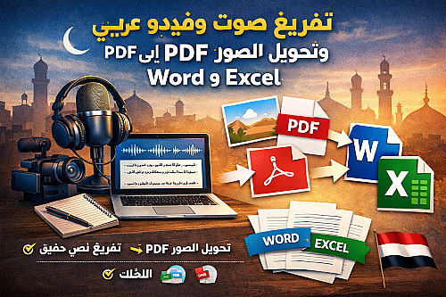 تفريغ احترافي للملفات الصوتية أو الفيديو وتحويلها إلى نصوص مكتوبة بدقة عالية.