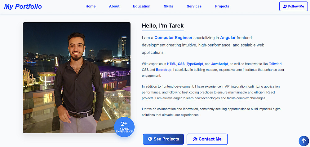 أنا مطور واجهات أمامية متخصص في تصميم وبناء مواقع البورتفوليو الشخصية والاحترافية باستخدام أحدث التقنيات وبأعلى معايير الجودة.