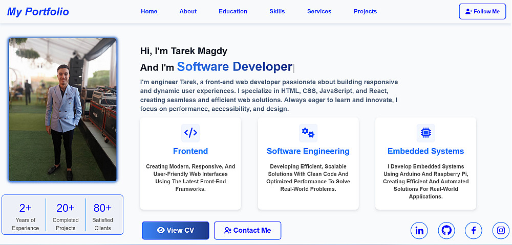 هل تبحث عن موقع بورتفوليو (Portfolio Website) احترافي يعرض أعمالك ومهاراتك بطريقة مميزة تساعدك على إبراز هويتك المهنية وجذب العملاء أو أصحاب العمل؟