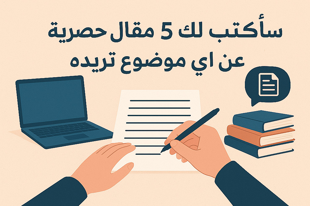 ساكتب لك 5مقالات حصرية من 500 كلمةعن اى موضوع تريده مقالات حصرية كتابة بشرية متوافقة مع السيو تستطيع نشرها على اى موقع