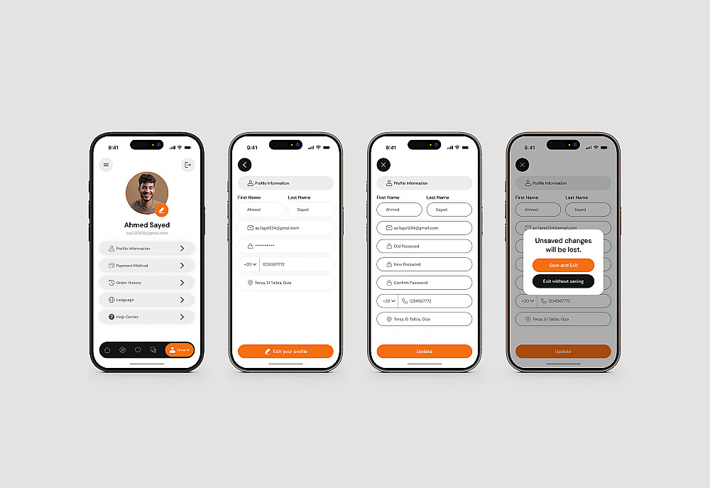 تصميم جميع الشاشات المطلوبة بجودة عالية ودقة في التفاصيل.
