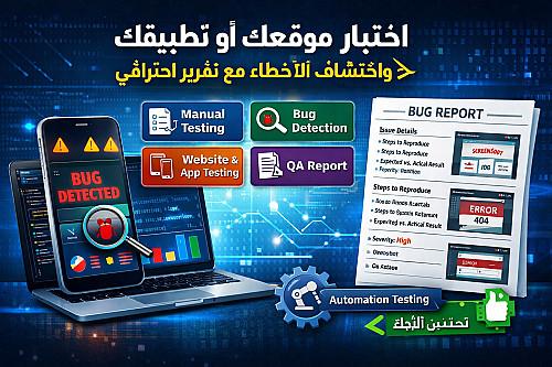 سأقوم بفحص واختبار موقعك أو تطبيقك بدقة واحترافية باستخدام تقنيات الاختبار اليدوي (Manual Testing) وعن طريق الفحص الآلي(Automation Testing) لصفحه واحده.