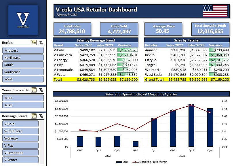 لوحة تحكم تفاعلية (Dashboard) جاهزة للمتابعة: تحليل شامل لأداء المبيعات والأرباح لسنوات متعددة.
