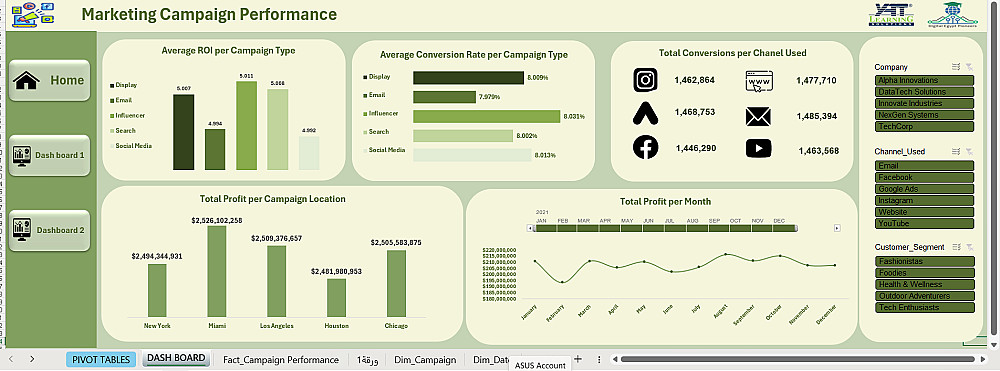 4- تصميم لوحة تحكم واحدة (1 Dashboard) تفاعلية باستخدام Power BI أو Tableau لعرض النتائج بشكل واضح وجذاب.