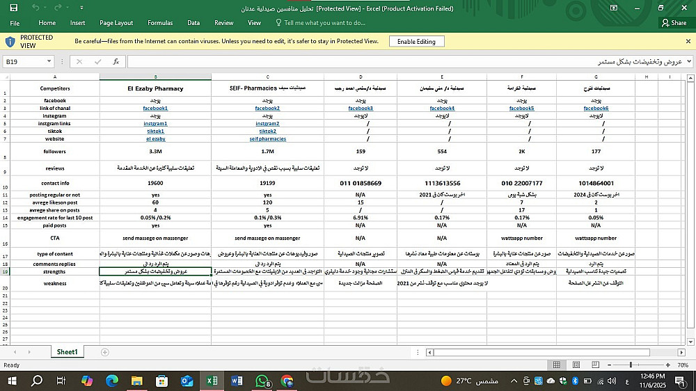 اقدم لك خدمة تحليل صفحات لعدد 3 منافسين علي (الفيس بوك ,والانستاجرام )