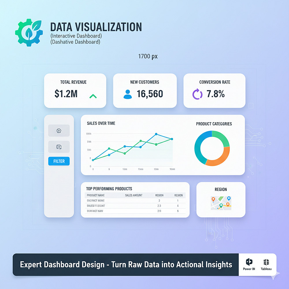 من خلال هذه الخدمة، سأقوم بتحويل بياناتك الأولية إلى داشبورد (لوحة بيانات) تفاعلية وجذابة بصرياً. هذه الداشبورد ستساعدك على رؤية القصة الكاملة وراء بياناتك، وتتبع أهم مؤشرات الأداء (KPIs) الخاصة بك بلمحة واحدة.