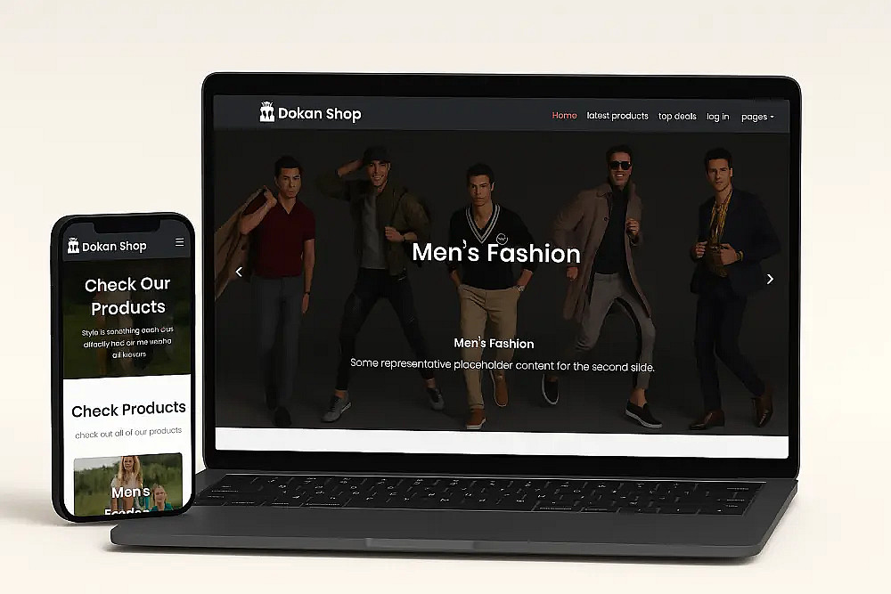 الخدمة تشمل تصميم وتطوير موقع متجر إلكتروني ديناميكي باسم Dokan Shop باستخدام React وJavaScript، ويتضمن الآتي:
