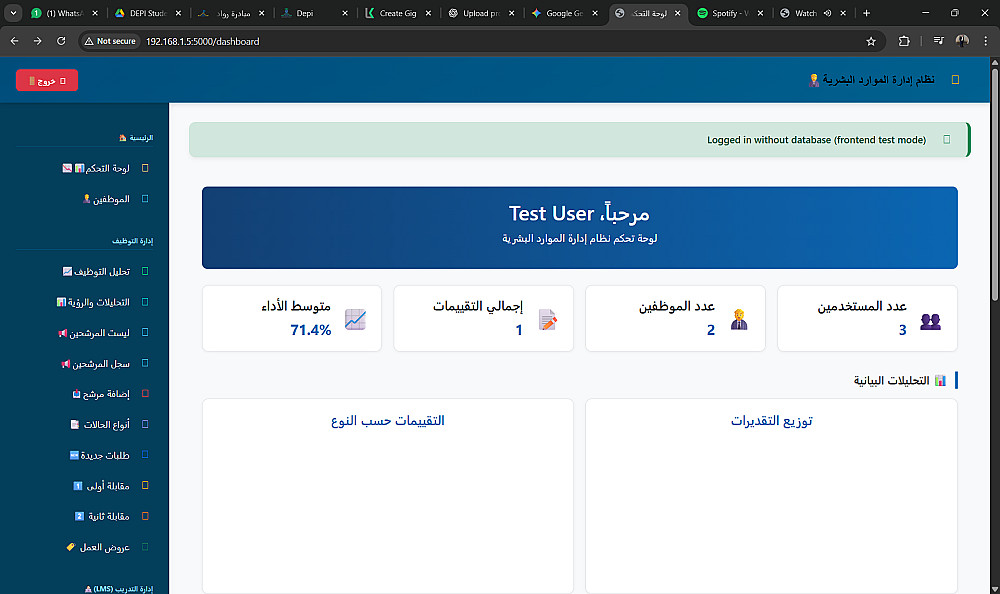 تصميم وتطوير نظام إدارة الموارد البشرية (HR System) كامل — موظفين، أقسام، مستخدمين، أدوار