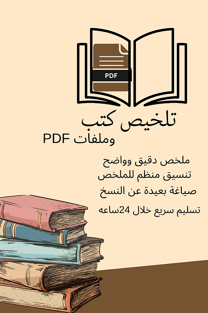 أقدم خدمة تلخيص احترافية للكتب وملفات PDF والمقالات الطويلة بأسلوب واضح ومنظم.