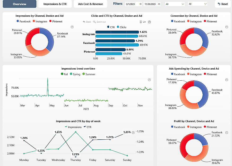 - رسوم بيانية ولوحات معلومات جاهزة للعرض.