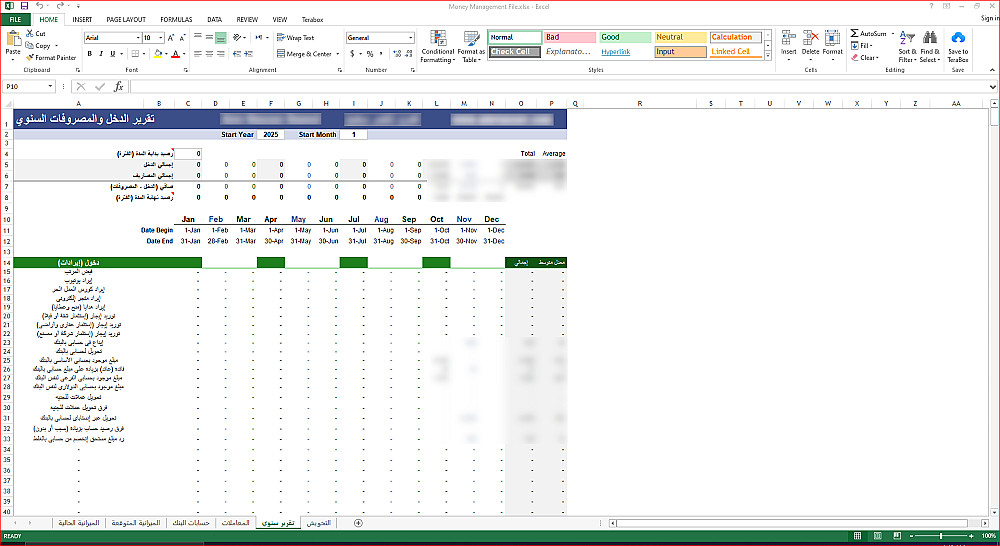 - الجزء الخاص بتقرير الدخل والمصروفات السنوى يتم تسجيله وترصيده تلقائيا عند إنتظامك على تسجيل وتحديث معاملاتك اليومية.