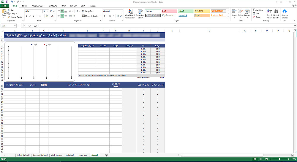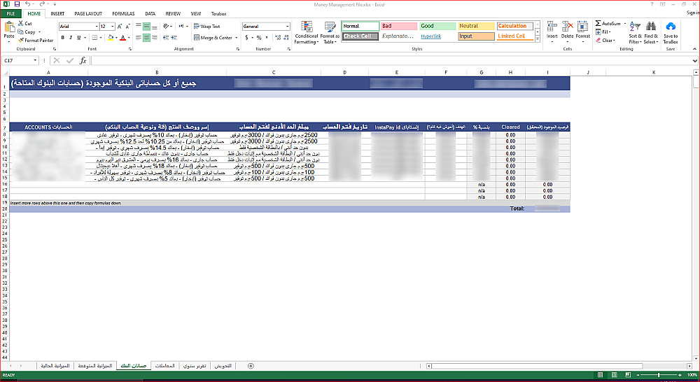 ملف إدارة المال وتتبع كل عملياتك وأمورك المالية والنقدية