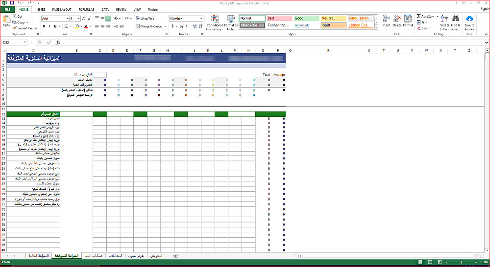 ** ساقدم لك ملف إكسيل excel كامل وشامل لجميع أمورك المالية حيث أنه الملف جاهز للعمل مباشرة بحيث إنك تضع أو تعبئ بيانات أمورك المالية والنقدية السائلة (الكاش مانى) وتسجيل الإيصالات والفواتير وكيفية إستخدام الموارد المالية وإدارتها والقيام بأعمال المحاسبة المالية والتخطيط الشخصى والميزانيات وتنظيم ومتابعة الأمور المالية بسهولة.