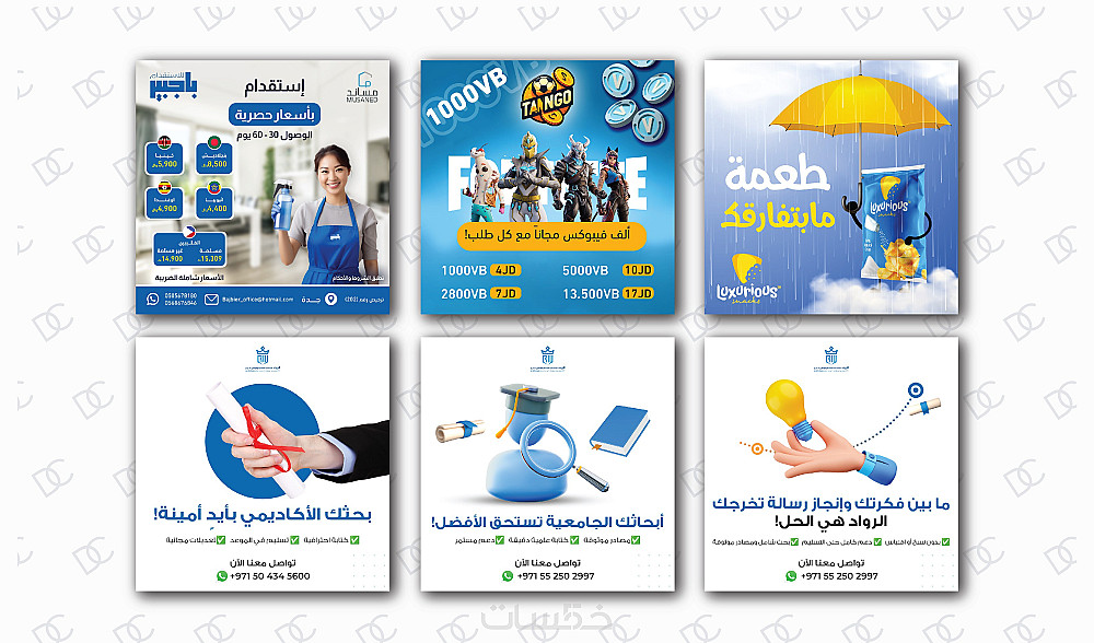 - عدد التصاميم: 3 تصاميم سوشيال ميديا مقابل سعر الخدمة