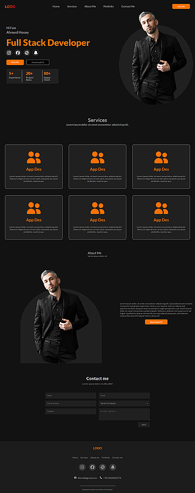تصميم موقع portfolio خلص بك من صفحة واحدة به أكثر من section بحد أقصي 5