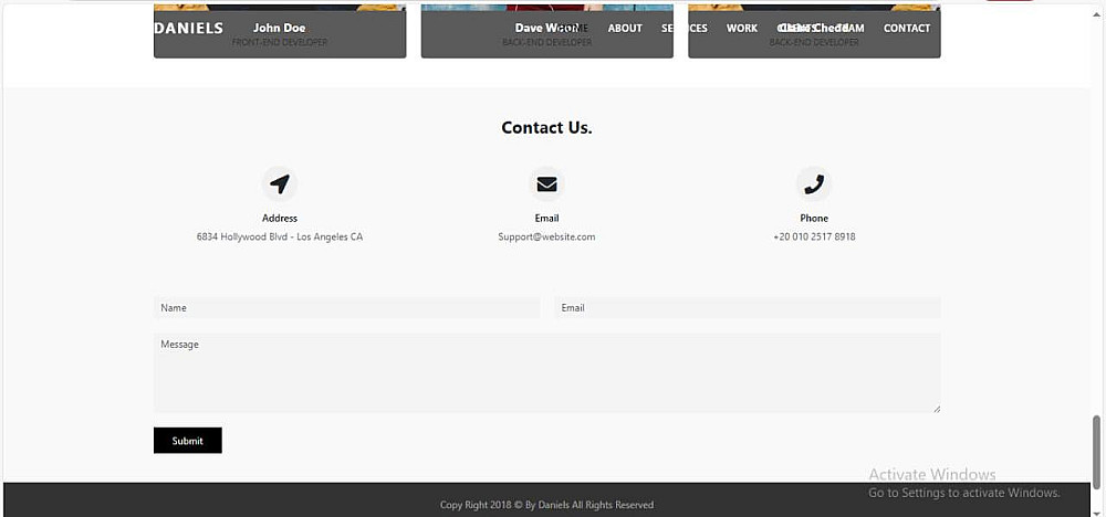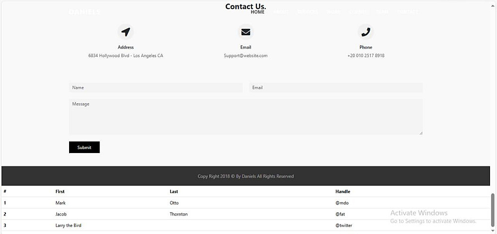 صفحة للتواصل (Contact) مع نموذج تواصل مباشر.