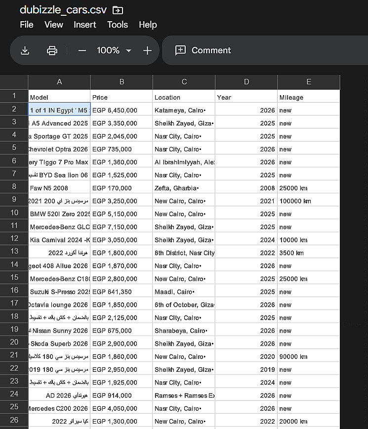 تسليم البيانات في ملف منظم (Excel, CSV, أو JSON).