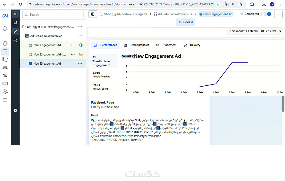 هساعدك في إعداد إعلان ممول على فيسبوك يوصل لعملائك المحتملين بأفضل طريقة ممكنة. هشتغل معاك خطوة بخطوة عشان نحدد الهدف المناسب للإعلان، ونختار الجمهور الصح، ونصمم الإعلان بشكل يشد الانتباه ويوصل رسالتك بوضوح. يتم عمل الاعلان لمدة يوم من الحساب الاعلاني الخاص بالعميل.