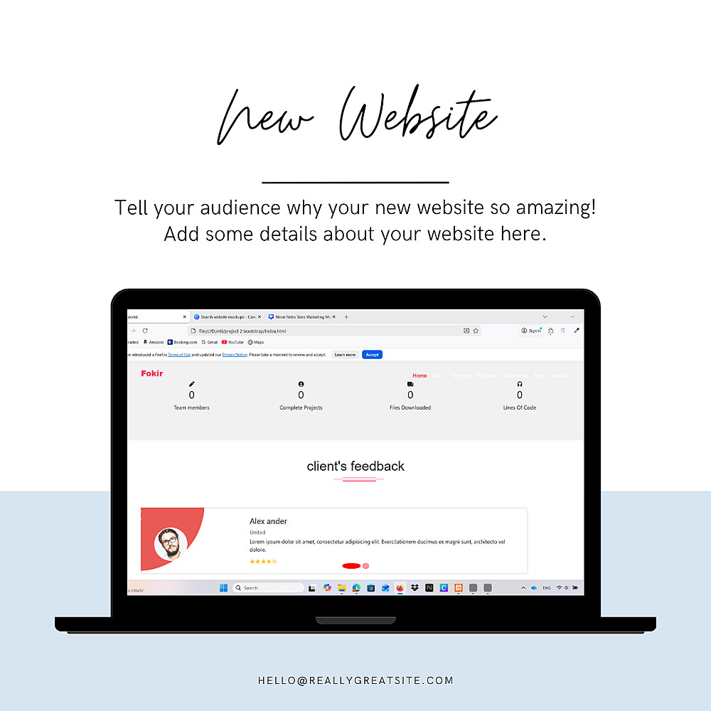 سأقوم ببرمجة موقعك اعتمادًا على التصميم الذي تملكه، باستخدام HTML وCSS وBootstrap، java scriptمع واجهة أمامية متجاوبة