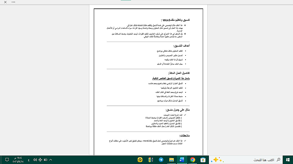 وتحسين شكل الملف ليكون سهل القراءة وجاهزًا للاستخدام أو التسليم.