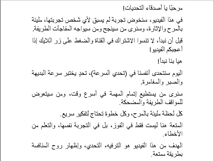 ملاحظات: يمكن تخصيص الأسلوب حسب نوع القناة أو زيادة عدد الكلمات حسب التطويرات.