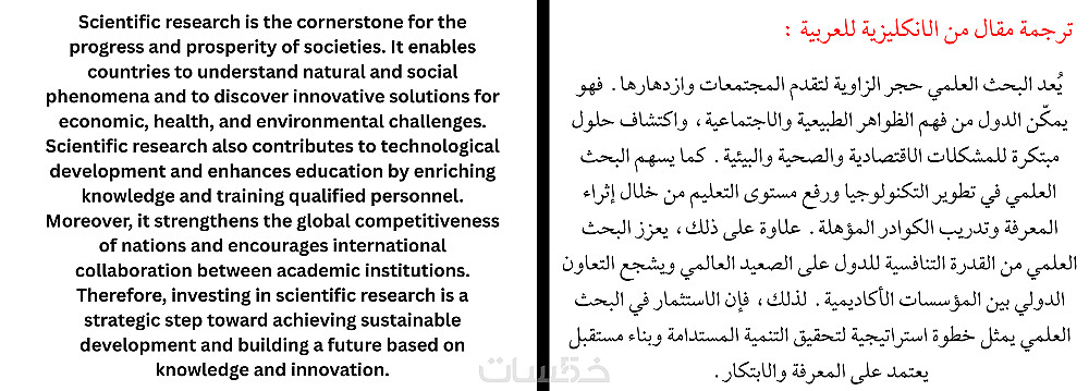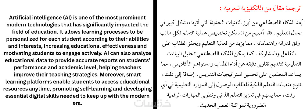 - ترجمة كل 700 كلمة (عربي - إنجليزي) فقط مقابل الخدمة.