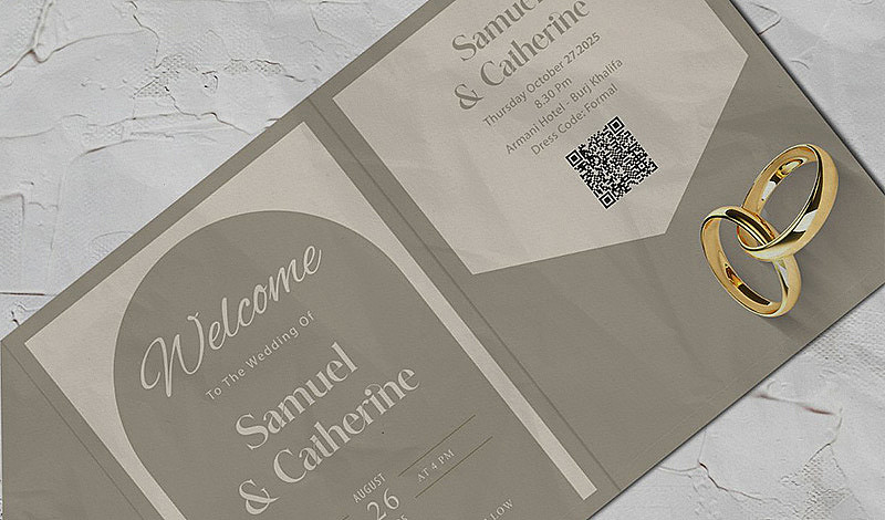 أصمم لك دعوة زفافك بأسلوب راقٍ يجمع بين الجمال والدقة التقنية لضمان خروجها من المطبعة بأفضل صورة.
