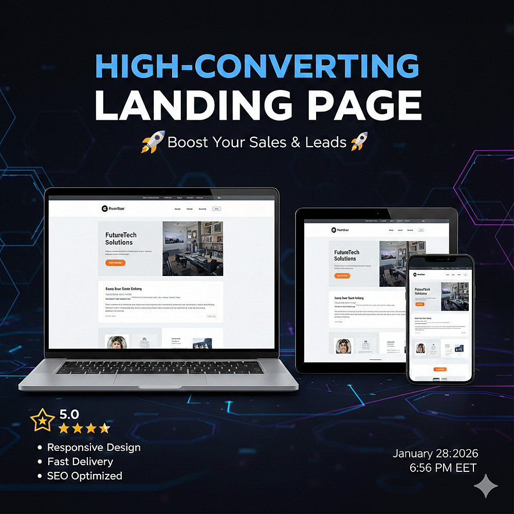 أقدّم لك خدمة تصميم صفحة هبوط (Landing Page) عصرية وسريعة باستخدام