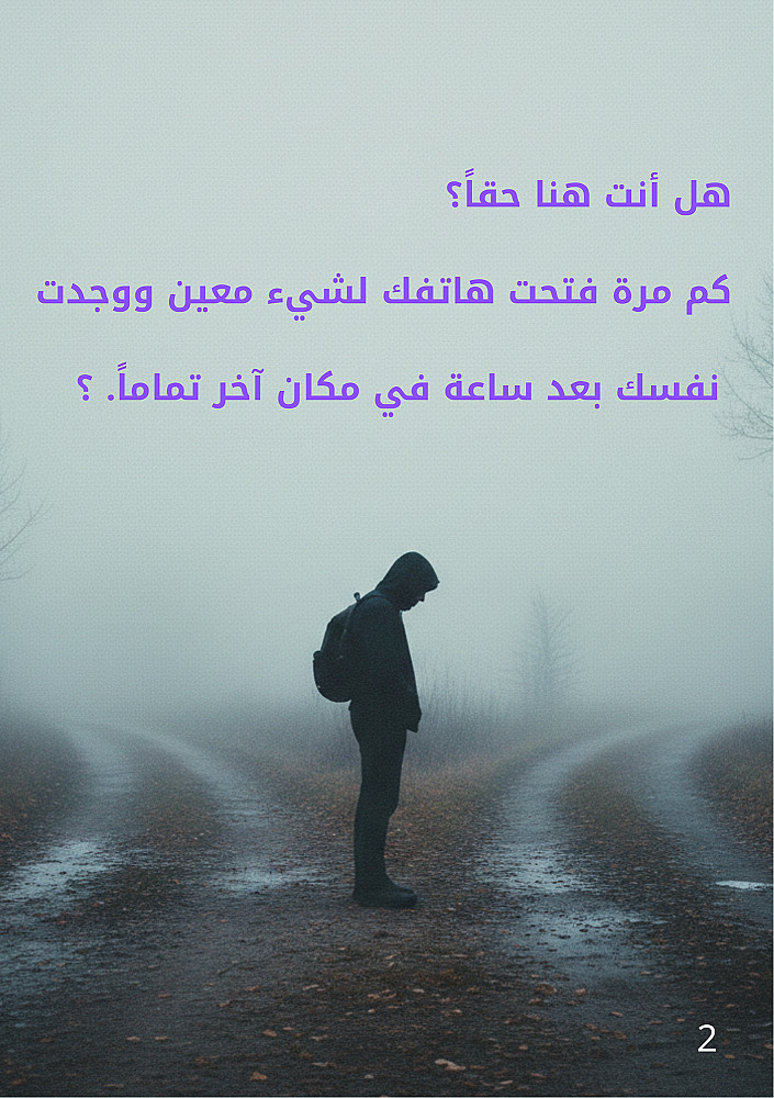 "هل أنت من يستخدم الهاتف أم أن الهاتف يستخدم فراغك؟ هذا الكُتّيب هو وعيك الجديد باللحظة التي تقرر فيها الهروب إلى الشاشة.
