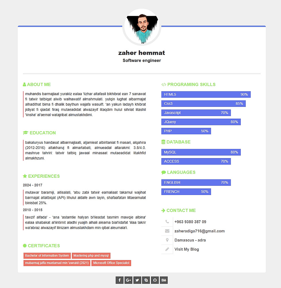 اعمل في تطوير مواقع الويب front end (html5 , css3 , javascript) و اعمل ايضا back end (php , my sql) جاهز لاي تعديل او تصميم او تحديث لاي موقغ .