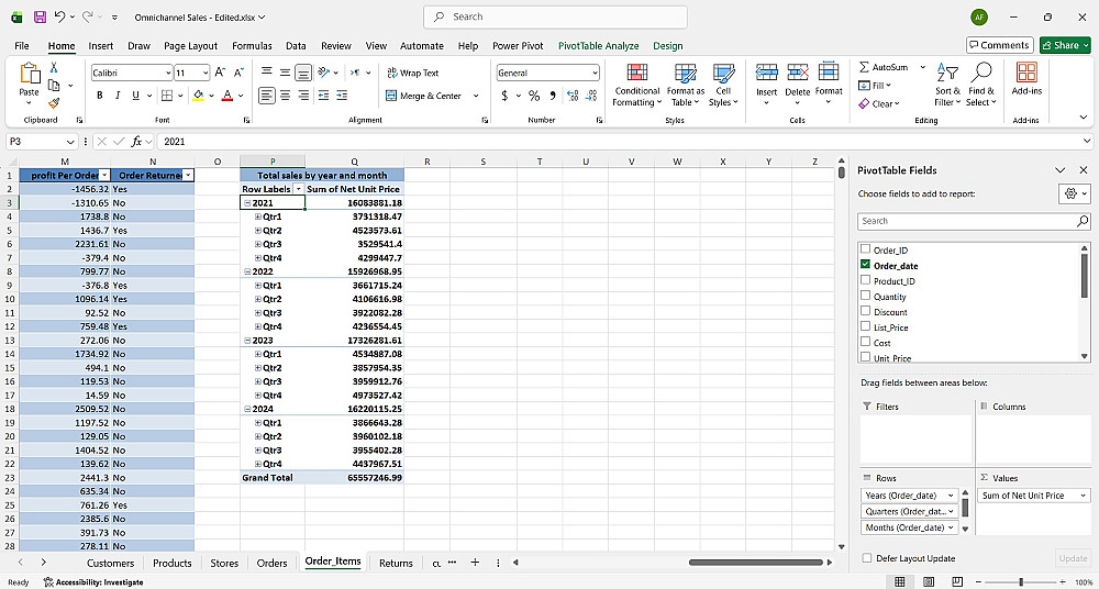 تنظيم وتحليل بيانات Excel وإنشاء تقارير احترافية
