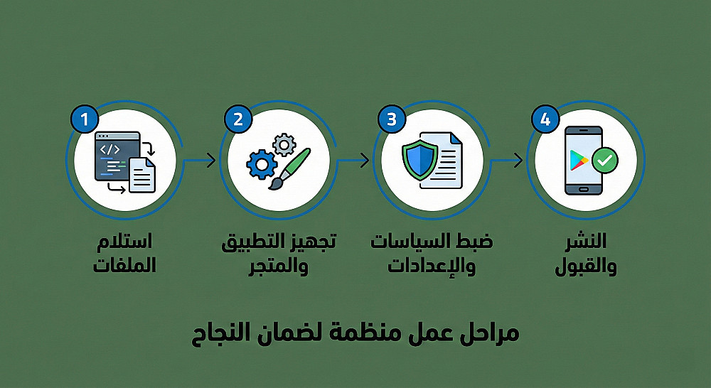 الامتثال والسياسات: إنشاء صفحة "سياسة الخصوصية" ورفعها علي موقعك أو استضافة مجانية، وضبط إعدادات المحتوى (Content Rating) لضمان عدم رفض التطبيق.