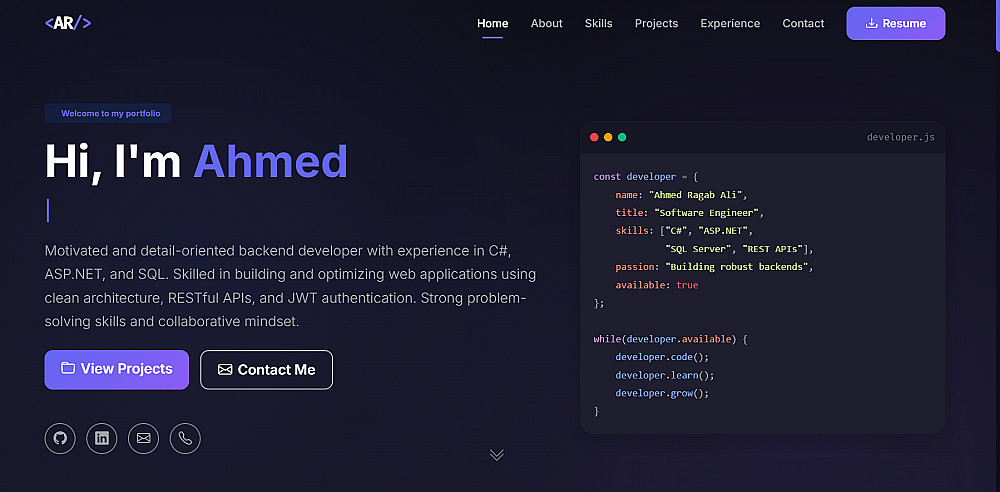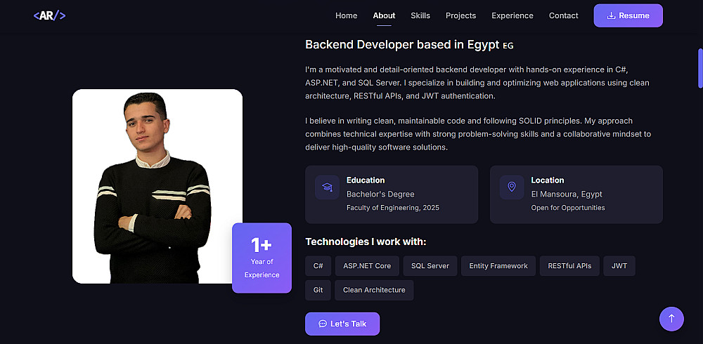 أنا أقدّم لك تصميم موقع شخصي عصري وسريع ومتجاوب مع جميع الأجهزة، مناسب لـك.