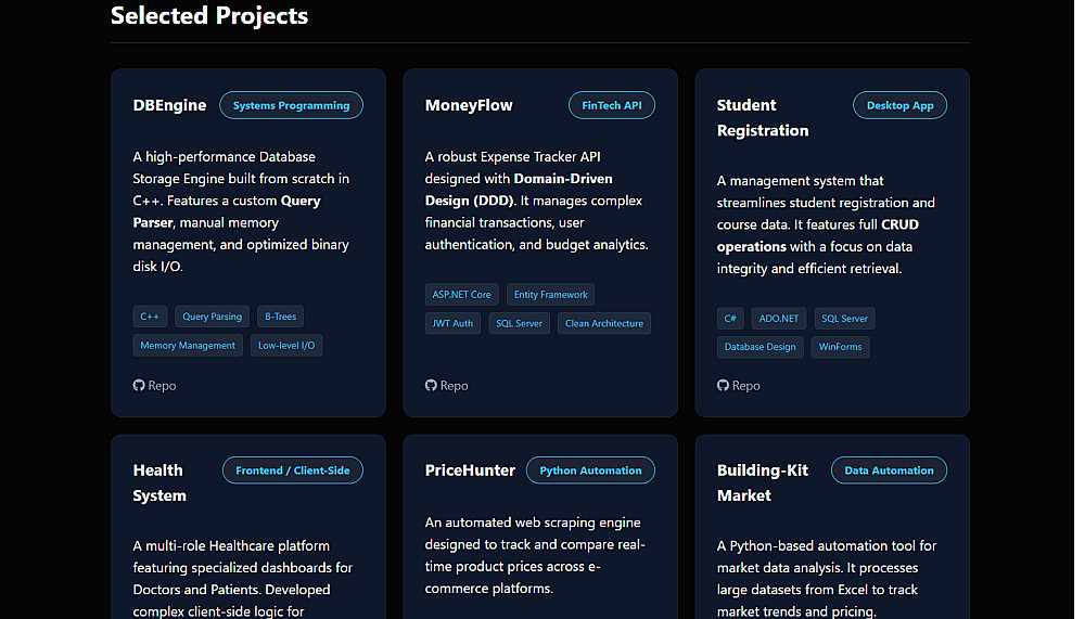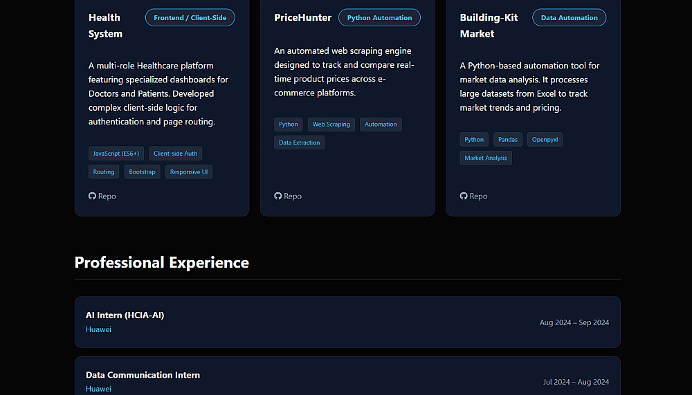 🔹 تصميم بورتفوليو شخصي احترافي (Personal Portfolio Website).