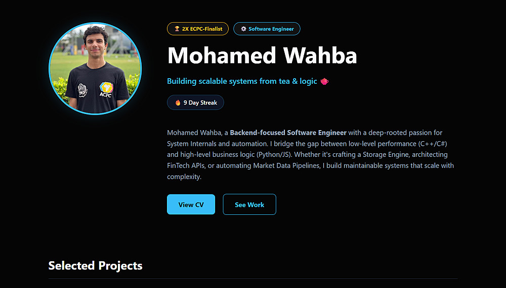 🔹 قسم نبذة شخصية (About Me) + المهارات (Skills).