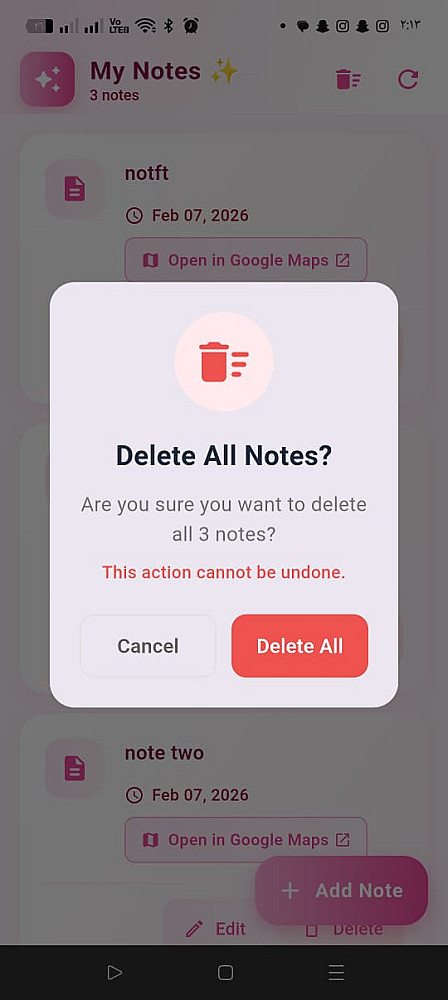 تطوير تطبيق ملاحظات مع تحديد الموقع وقاعدة بيانات محلية