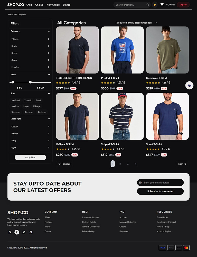 ✔ صفحة المنتجات مع نظام تصفية (Filtering) ديناميكي