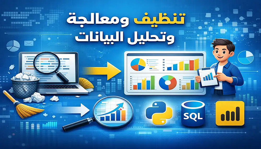 إزالة التكرارات، معالجة القيم الناقصة، وتصحيح الأخطاء لضمان بيانات نظيفة وجاهزة للتحليل.